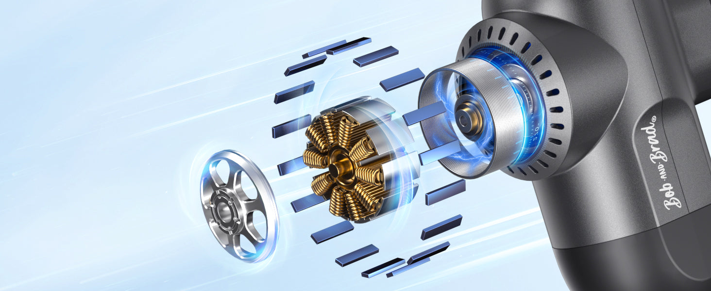 This massage gun packs a punch with a brushless motor and dual shaft drive for uninterrupted power. It offers a max speed of 3200rpm to accelerate muscle recovery, reduce pain, and improve flexibility. With five massage heads and speeds, you can tailor your therapy for specific muscle groups. Plus, it's equipped with a Type-C quick charge and a 10-minute timer for safety. Experience a quiet, effective massage with the Bob and Brad C2 - your go-to for muscle relief on the move.