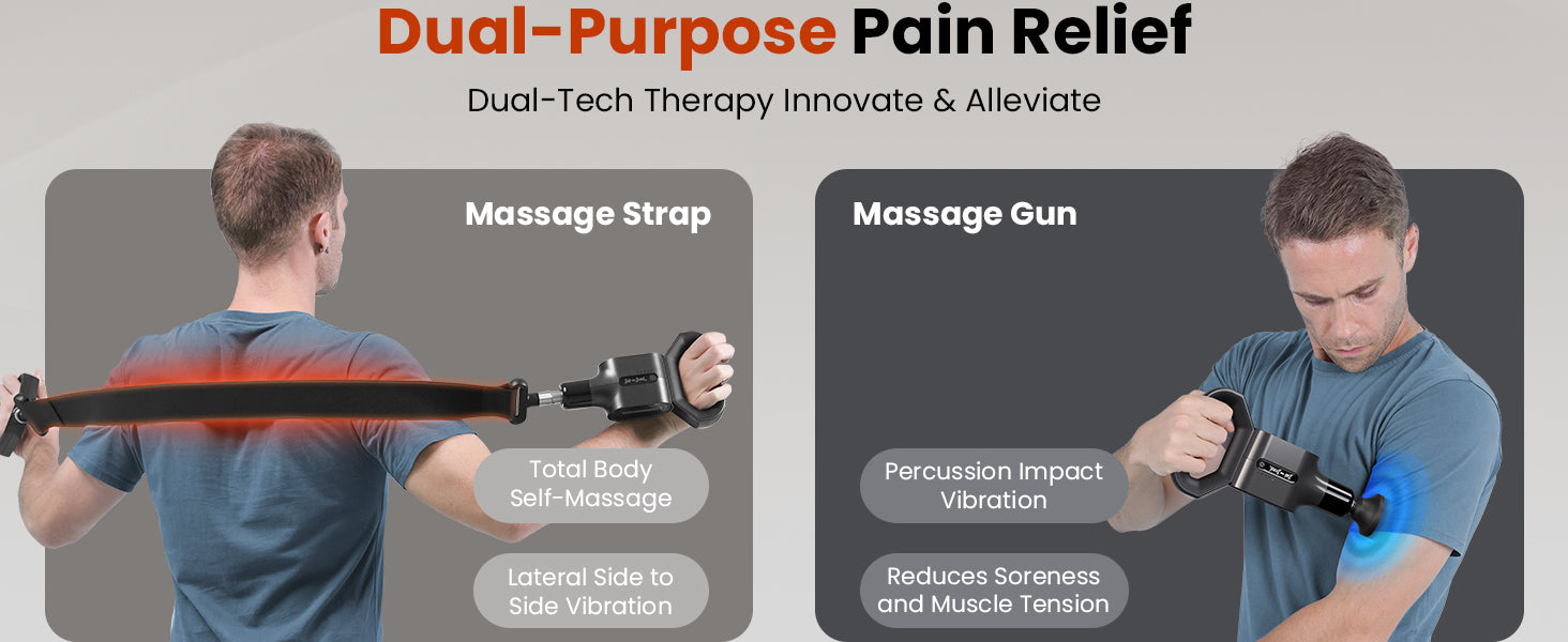 Switch between side-to-side vibration therapy and deep tissue percussion massage. Get the value of TWO professional massage devices in ONE compact unit.
