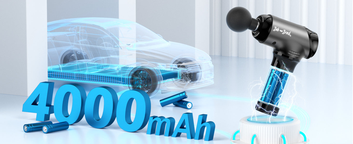 - 4000 m-a-h LONG-LASTING BATTERY CAPACITY - The high-quality rechargeable battery is upgraded to 4000 m-a-h, giving this massage gun a 2.5 times longer battery life than the original. It provides 2-5 hours working time and only takes 2-3 hours to fully charge. Its exact working time depends on vibration frequency and massage pressure during use.
