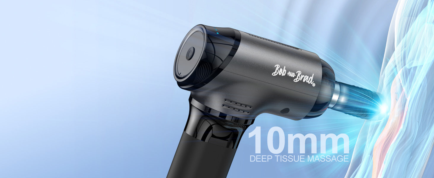 - DEEP MUSCLE RELAXATION - The Bob and Brad deep percussion massage gun is powered by a 25W high-torque brushless motor that runs up to 3200 RPM. It reaches and massages deeper in the muscle tissue with its 10mm amplitude, providing you a powerful experience. The massage gun is easy to use and relieves muscle fatigue and pain, boosts blood circulation, and helps with recovery after intense workouts. Ideal for athletes, people who exercise, or people with injuries.