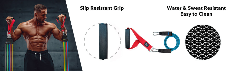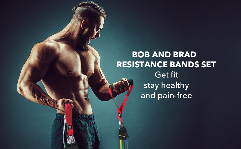 - BOB AND BRAD RESISTANCE BAND - We've redesigned the resistance band with a higher weave nylon material for the handle and ankle strap for more durability and strength, dual-tone latex tubing for more stretch resistance, and a more ergonomic grain pattern for the handle for easier grip and slip resistance.